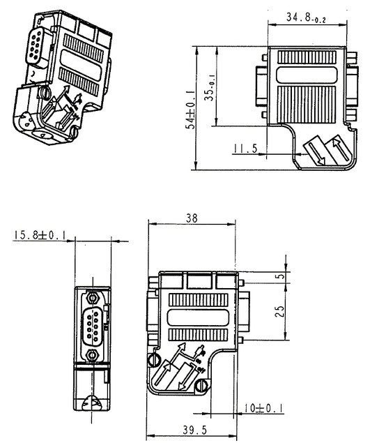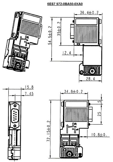 Drawings of PROFIBUS connectors 6ES7972-0BA50-0XA0