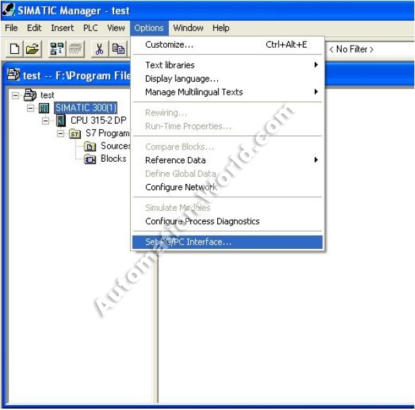Enter the main interface of STEP7 programming software (SIMATIC Manager), click on the “Set PG / PC Interface ” option under “Options” menu into the PG / PC interface settings.